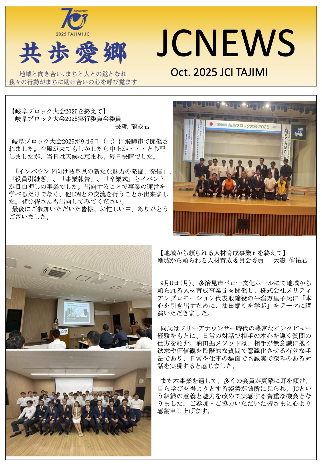 2024年月6日(土) 詳細を見る2025年9月6日(土)飛騨市文化交流センターにおいて岐阜ブロック大会2025が開催されました。