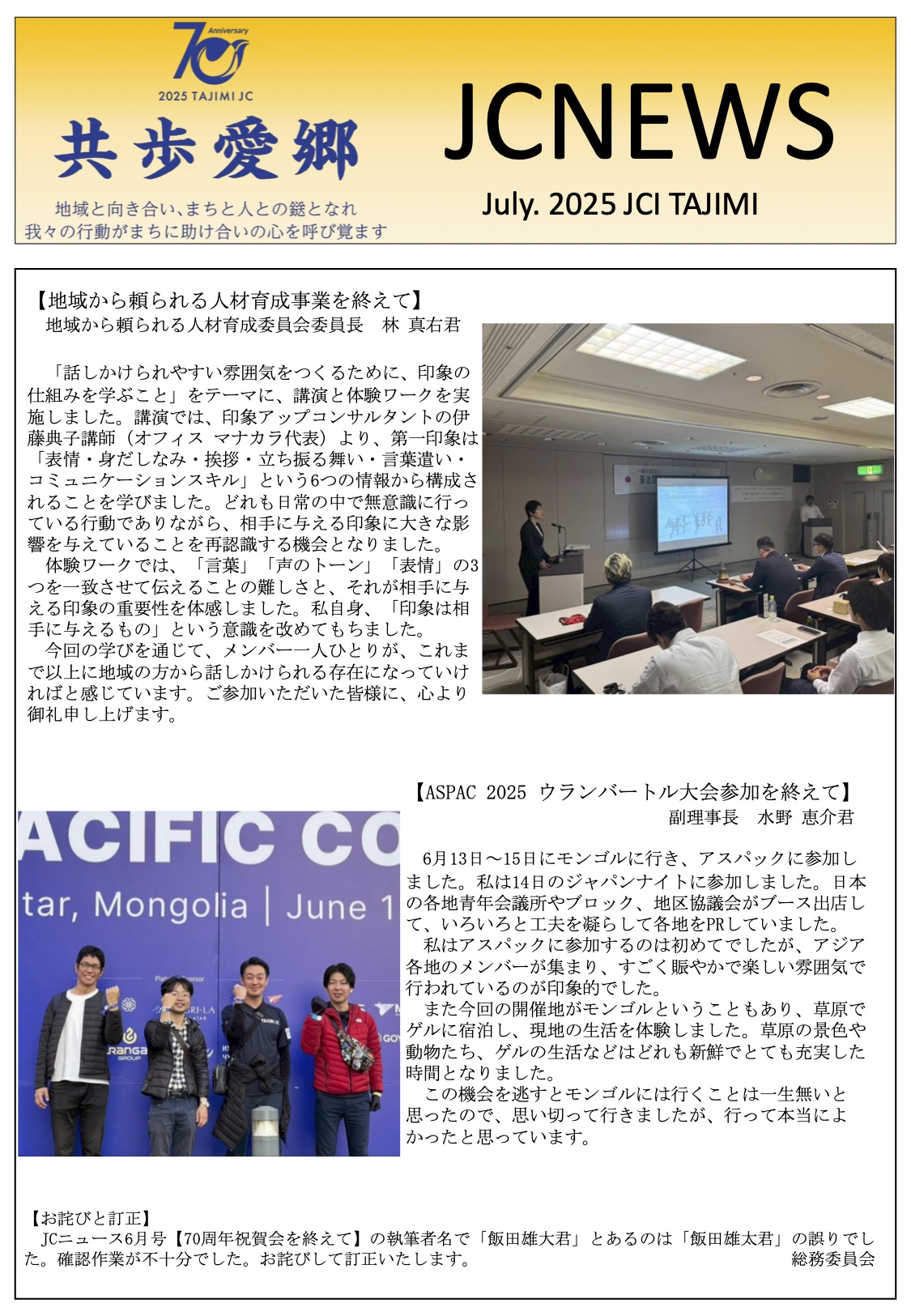 2024年月8日(月) 詳細を見る2025年9月8日(月)、バロー文化ホール 2F 大会議室において、第3回臨時総会、9月例会および地域から頼られる人材育成事業ⅱを開催いたしました。