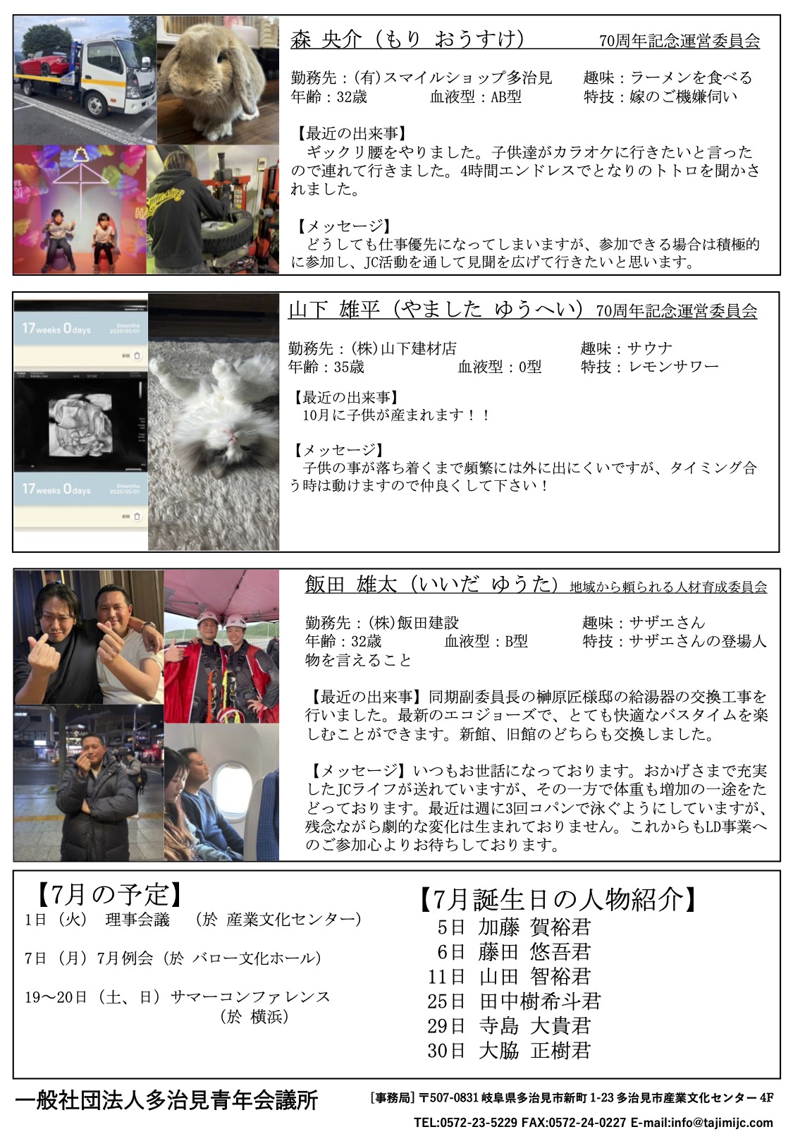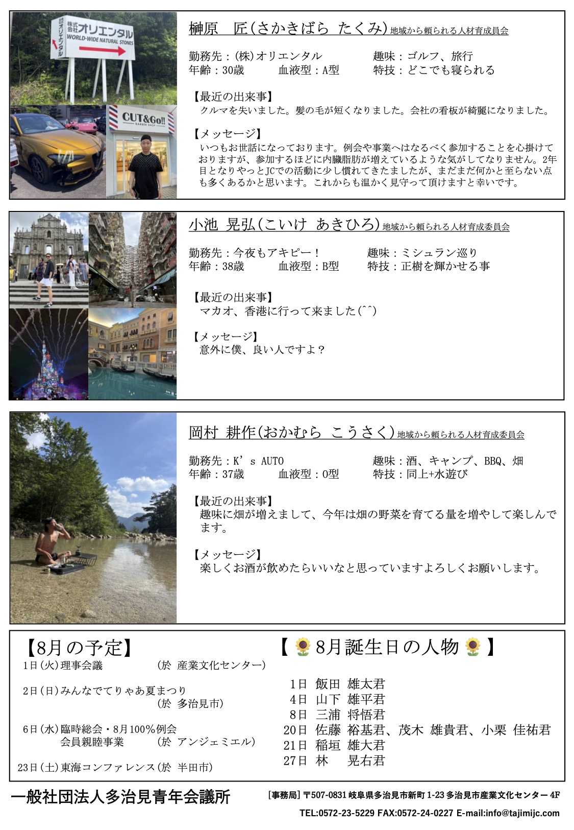 2024年月6日(水) 詳細を見る2025年8月6日(水)、土岐市内のアンジェミエルおいて、第2回臨時総会及び8月例会を開催いたしました。
